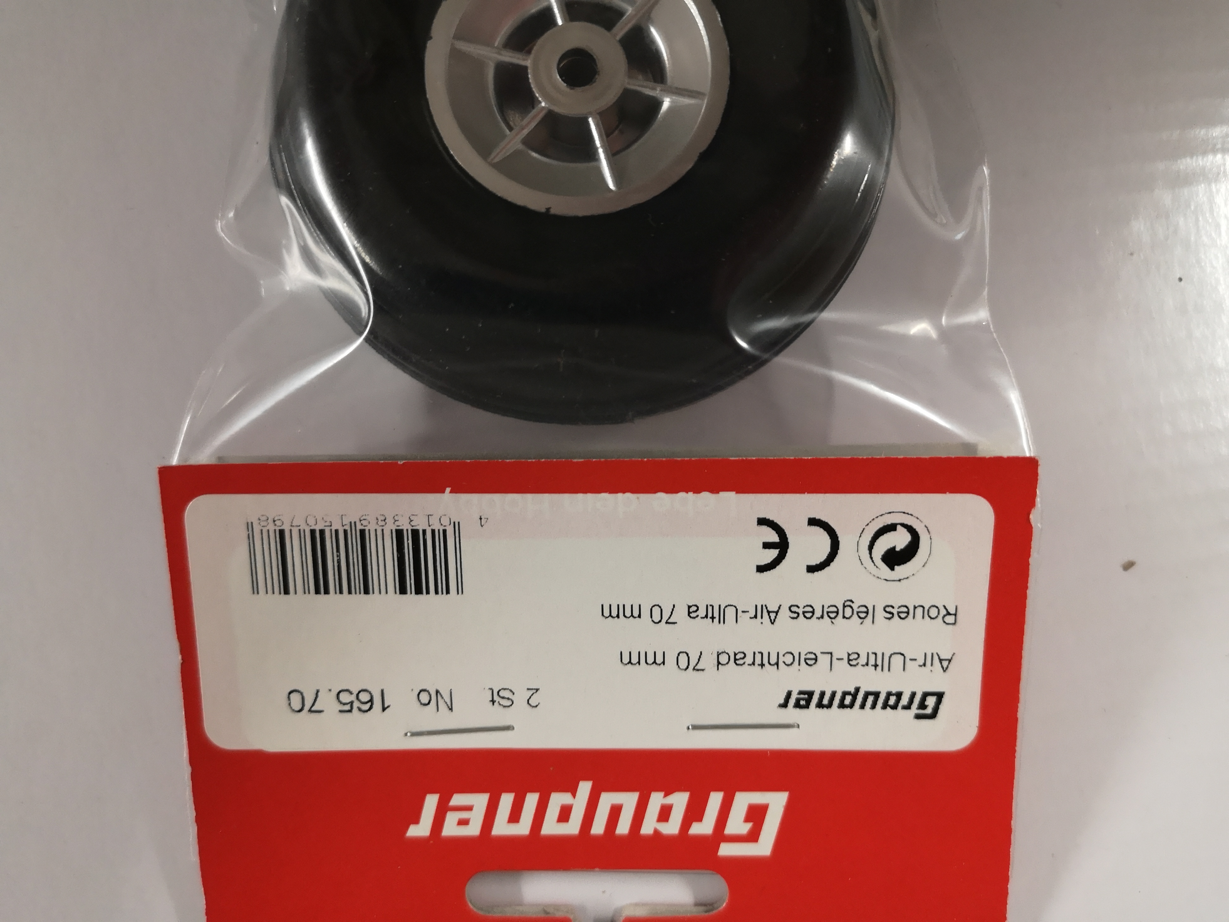 Diese vorbildähnlichen Räder sind sehr leicht und daher für Elektroflugmodelle besonders gut geeignet. Die Hohlkammerreifen wirken stoßdämpfend und sind formstabil. Die Oberfläche der Reifen und der Felgen ist kraftstofffest (auch gegen Zweitakt-Benzingemisch), hochglänzend und schmutzabweisend. Das Rillenprofil sorgt für einen stabilen Geradeauslauf beim Start und bei der Landung.