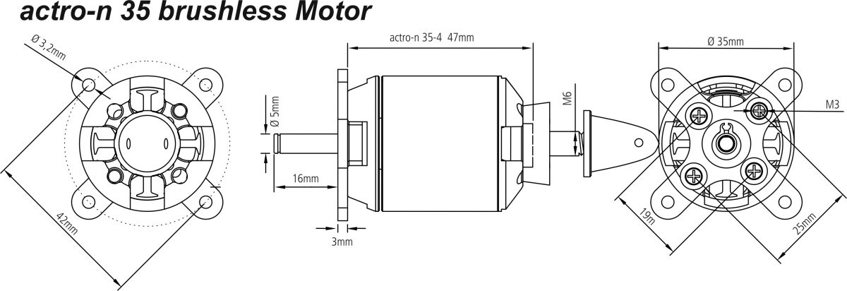Nicht nur für die hauseigenen Bausätze, sondern passend für eine Vielzahl auf dem Markt befindlicher Flugmodelle sind die neuen actro-n Motoren gedacht. In dieser Serie werden kraftvolle Elektromotoren der Baugrößen 28-50 mm angeboten, die in Drehzahl und Drehmoment an die gängigen Elektrosegler in der 1,5-3 m Klasse angepasst sind, ebenso finden die Motoren Ihren Platz in unseren Booten mit Rümpfen bis ca. 80cm. Die 35 mm Motoren eignen sich auch bestens für Trainer-Modelle bis ca. 1,6 m Spannweite bei bis zu 2,5 kg Abfluggewicht oder Boote ab einer Länge von ca. 80 cm. Die 50mm Baureihe ist für größere Elektroflugmodelle wie unsere Cessna (Bestell-Nr. 1371/00) und für Boote in der Größenklasse unserer Comtesse (Bestell-Nr. 3085/00) geeignet.
