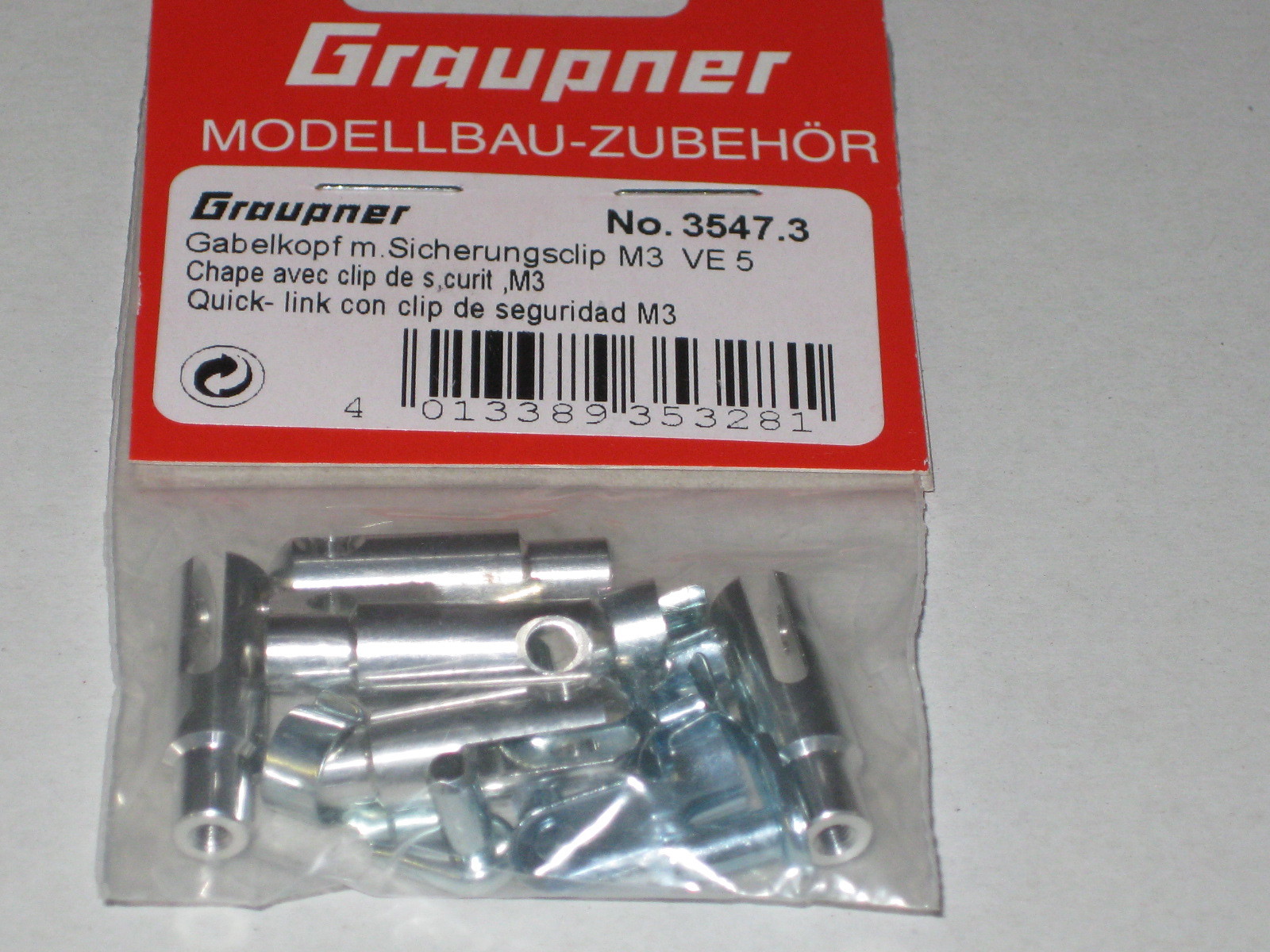 ALU Gabelkopf M3 mit Schnellverschluss / Sicherungsclip Graupner No.3547.3 VE= 5 Stück