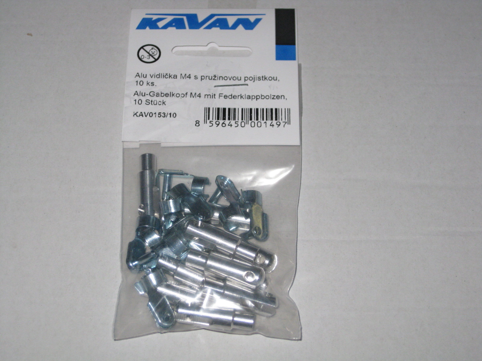 Stabiler M4 Gabelkopf aus Aluminium mit 4mm Sicherungsbolzen. Zur Anlenkung bei Großmodellen. Der Sicherungsbolzen wird durch eine Klappfeder gesichert.