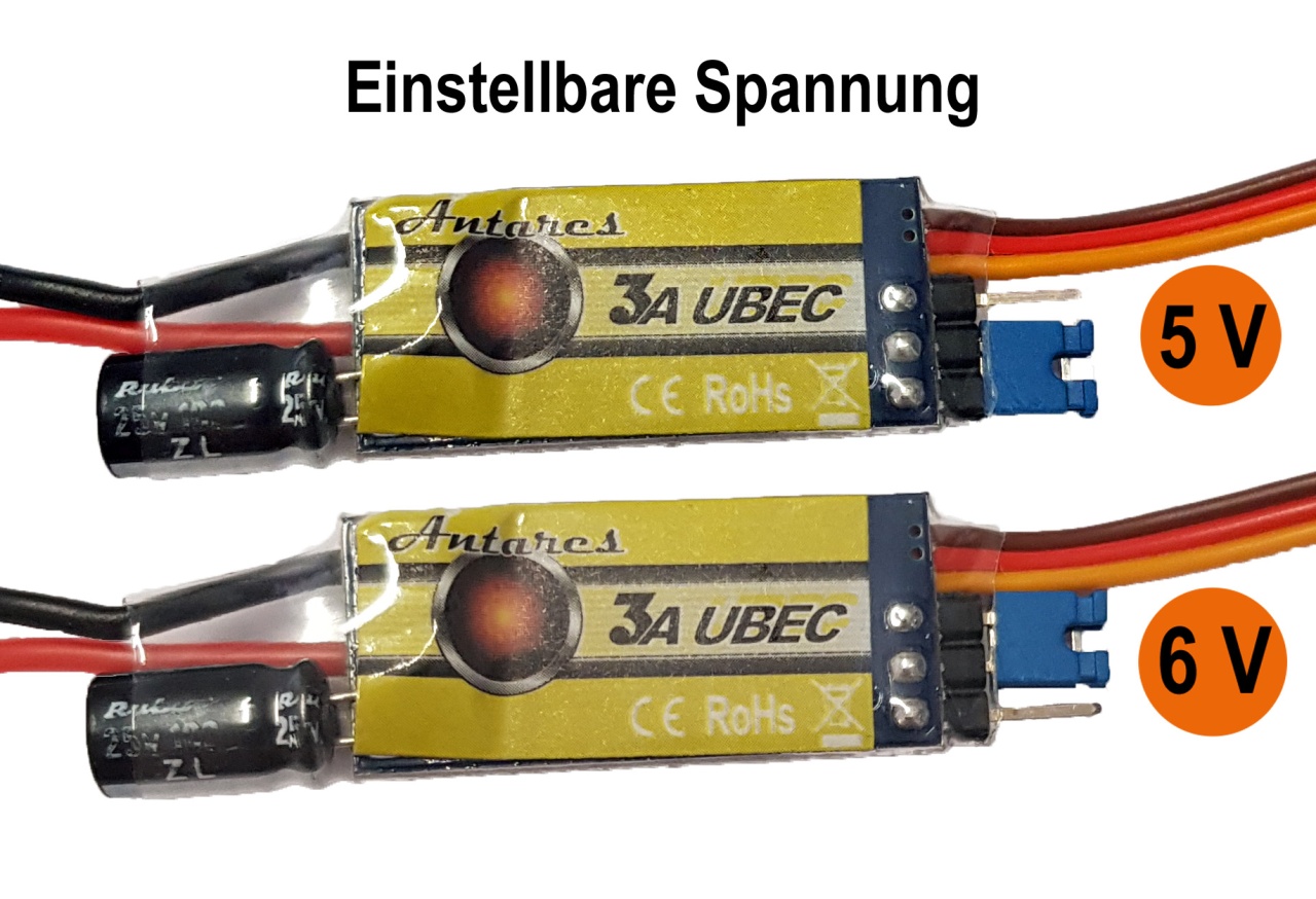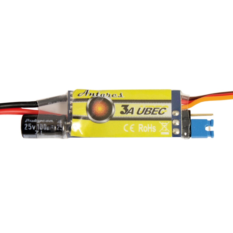 Die neue und qualitativ hochwertige D-Power Antares UBEC Serie wurde speziell für den Einsatz im funkferngesteuerten Modellbau entwickelt. Die Antares UBEC Serie ermöglicht es, den Empfänger und die daran angeschlossenen Servos direkt aus dem Flug- oder Fahrakku mit Strom zu versorgen. Mit dem UBEC kann ein Modell betrieben werden ohne neben dem Flug- oder Fahrakku einen weitere Stromversorgung wie einen Empfängerakku anzuschließen. Insgesamt besticht die Antares UBEC Serie durch ihre einfache Handhabung und die hohe Zuverlässigkeit in der Praxis. Die hochwertigen Silikonkabel in flexibler Ausführung unterstreichen diese Qualität.