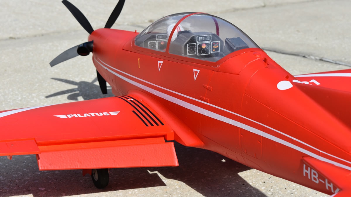 Die PC-21 kommt nahezu flugfertig aus der Box. Mit dem eingebauten Brushless-Antrieb, 7 installierten Servos und einem elektrischen Einzeihfahrwerk ist das Modell nach wenigen Handgriffen flugbereit.