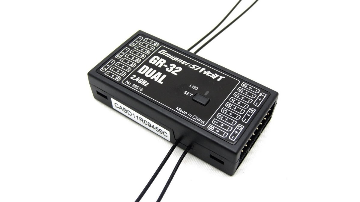 Graupner GR-32 HoTT Dual-Empfänger (16-Kanal) 33516Der Graupner GR-32 HoTT Empfänger verfügt über ca. 5000m Reichweite und kann mit bis zu 16 Kanälen belegt werden.