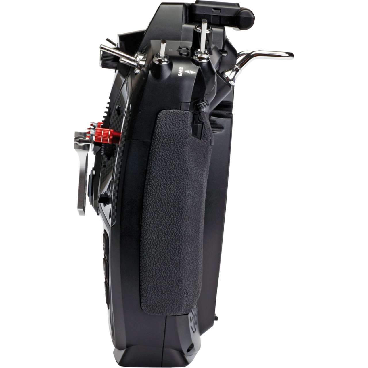 Merkmale der Hardware • 4-fach kugelgelagerte Aluminium Knüppelaggregate mit einer Auflösung von 4096 Stufen (12-Bit) für präzise Steuerung • Sonnenablesbares 4,3 Zoll Farb-TFT-Touchdisplay • Eine quer eingebaute Linearantenne mit einstellbarem Abstrahlwinkel • 4000 mAh 1S3P LiHV-Akku für Senderbetriebszeiten von bis zu 4h und mehr • Micro-USB Anschluss mit Ladefunktion, USB-Joystickfunktion, Massenspeicherfunktion, Kopfhörerbuchse • Von außen einstellbarer Modus und einstellbare Federkräfte der Knüppel • Interne 16 GB ÎŒSD-Card • WLAN-fähig • DSC-Buchse für externe Module • Kabellose Lehrer/Schüler-Funktion • Kabellose Firmware-Updates • Lautsprecher für Sprachnachrichten und Telemetrieansagen • Benutzerdefinierbare DSC und Datenports (SUMD, Crossfire und weitere) • Benutzerdefinierbares haptisches Feedback (Vibrationsalarm) • 5 x 3-Wege Schalter, 2 x 3-Wege Schalter/Taster, 1 x 2-Wege Schalter, 4 x Proportional Drehgeber, 2 seitliche Drehgeber, 8 benutzerdefinierbare digitale Tasten, 6 Navigationstasten