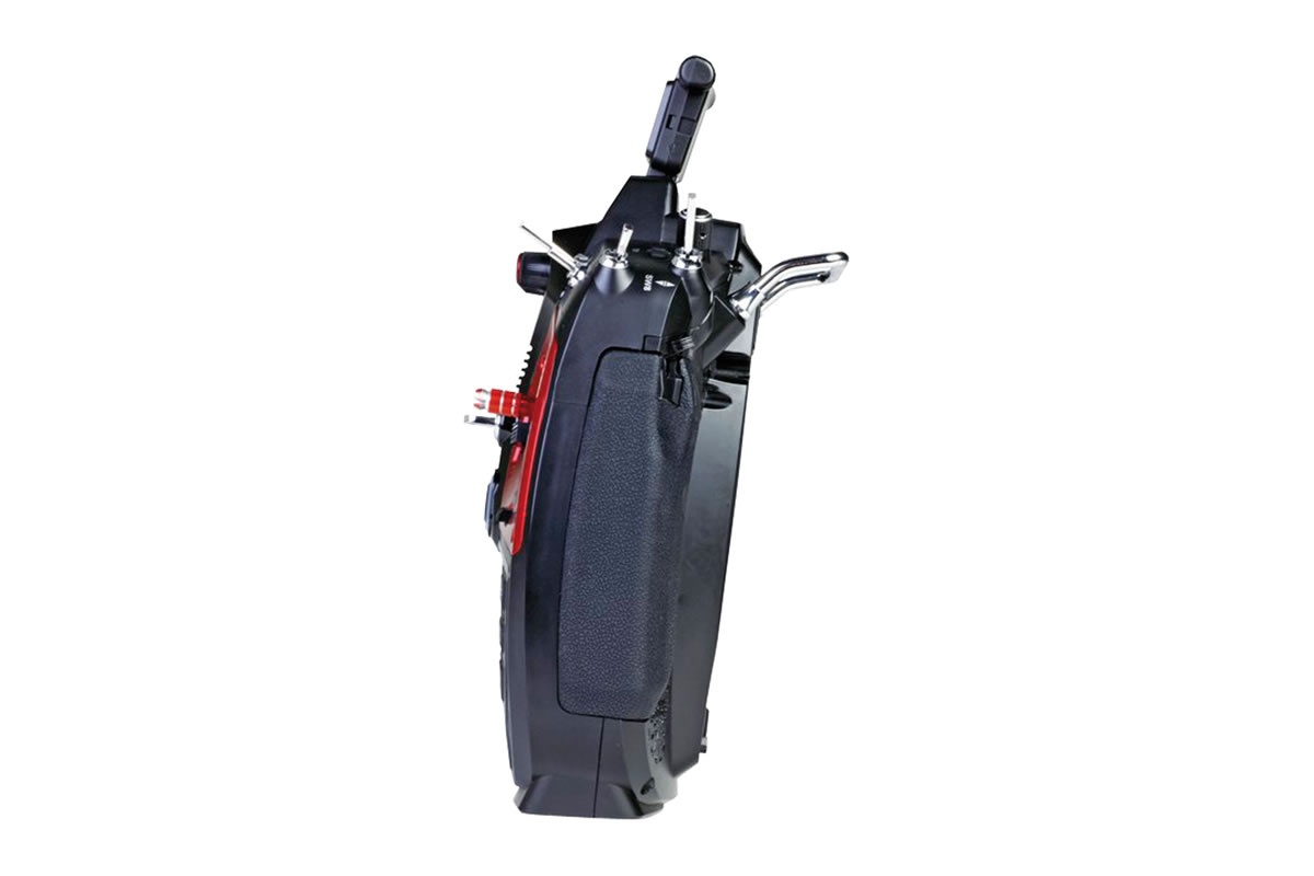 Merkmale der Hardware • 4-fach kugelgelagerte Aluminium Knüppelaggregate mit Hallsensoren und einer Auflösung von 4096 Stufen (12-Bit) für präzise Steuerung • Sonnenablesbares 4,3 Zoll Farb-TFT-Touchdisplay • 2 redundante 2,4 GHz HF-Module • Eine zirkular polarisierte Patchantenne und eine quer eingebaute Antenne mit einstellbarem Abstrahlwinkel • 9000 mAh 1S3P LiHV-Akku für Senderbetriebszeiten von 10h • Micro-USB Anschluss mit Ladefunktion, USB-Joystickfunktion, Massenspeicherfunktion, Kopfhörerbuchse • Von außen einstellbarer Modus und einstellbare Federkräfte der Knüppel • Interne 16 GB SD-Karte • WLAN- und Bluetooth-fähig • DSC-Buchse für externe Module • Kabellose Lehrer/Schüler-Funktion • Kabellose Firmware-Updates • Lautsprecher für Sprachnachrichten und Telemetrieansagen • Benutzerdefinierbare DSC und Datenports (SUMD, Crossfire und weitere) • Benutzerdefinierbares haptisches Feedback (Vibrationsalarm) • 5 x 3-Wege Schalter, 2 x 3-Wege Schalter/Taster, 1 x 2-Wege Schalter, 4 x Proportional Drehgeber, 2 x seitliche Drehgeber, 8 benutzerdefinierbare digitale Tasten, 6 Navigationstasten • Binden von beliebig vielen Empfängern zur Kanalerweiterung (max. 16 Kanäle). Der zuletzt gebundene Empfänger sendet die Telemetriedaten.