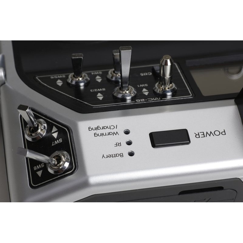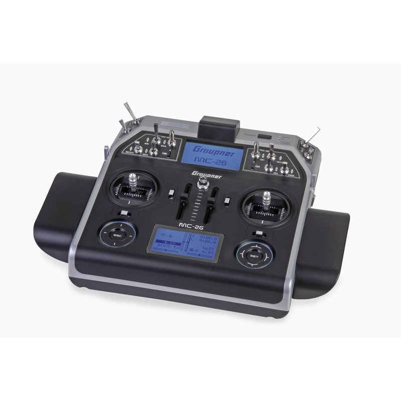 Die mc-26 Fernsteuerung verfügt über eine interne circular polarisierte Patchantenne mit sehr hoher Reichweite und Zuverlässigkeit. Die pro Achse doppelt kugelgelagerten Steuerknüppel sorgen für ein optimales Steuergefühl. Zwei große, kontrastreiche Displays informieren jederzeit über Telemetriedaten sowie -parameter und ermöglichen die schnelle und einfache Programmierung.