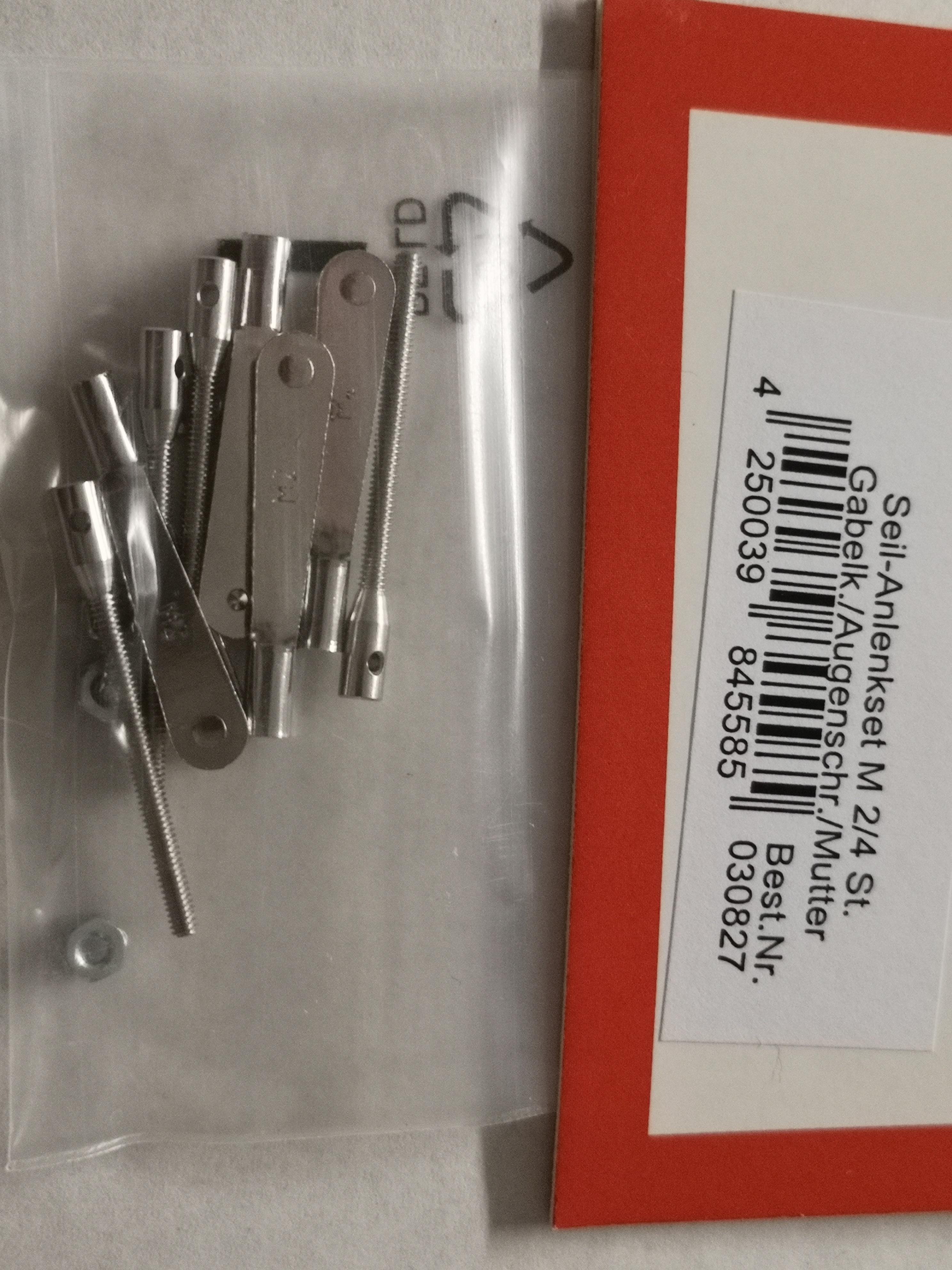 - jeweils 4 Stück Gabelkopf, Augenschraube und Mutter