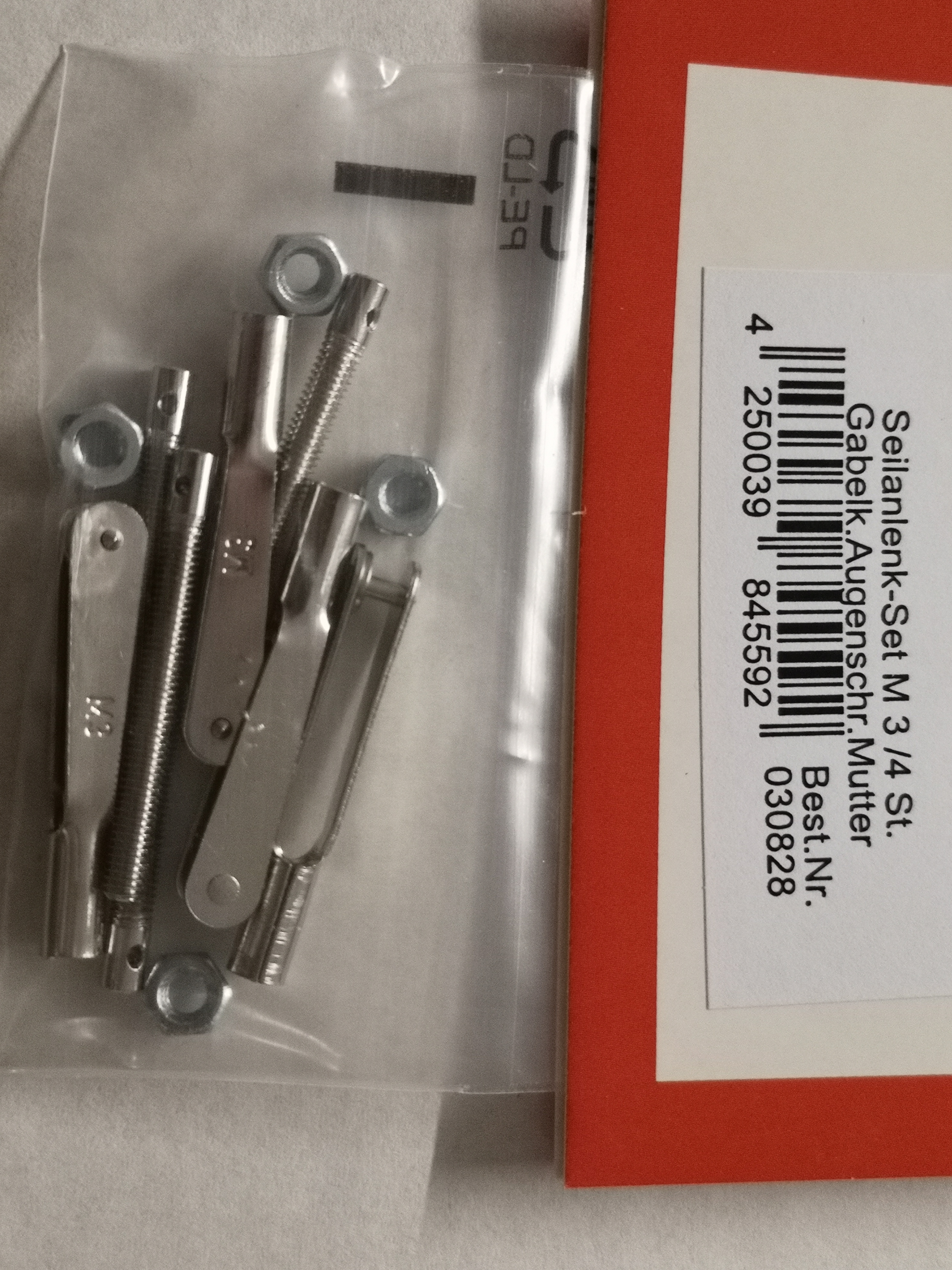 - jeweils 4 Stück Gabelkopf, Augenschraube und Mutter