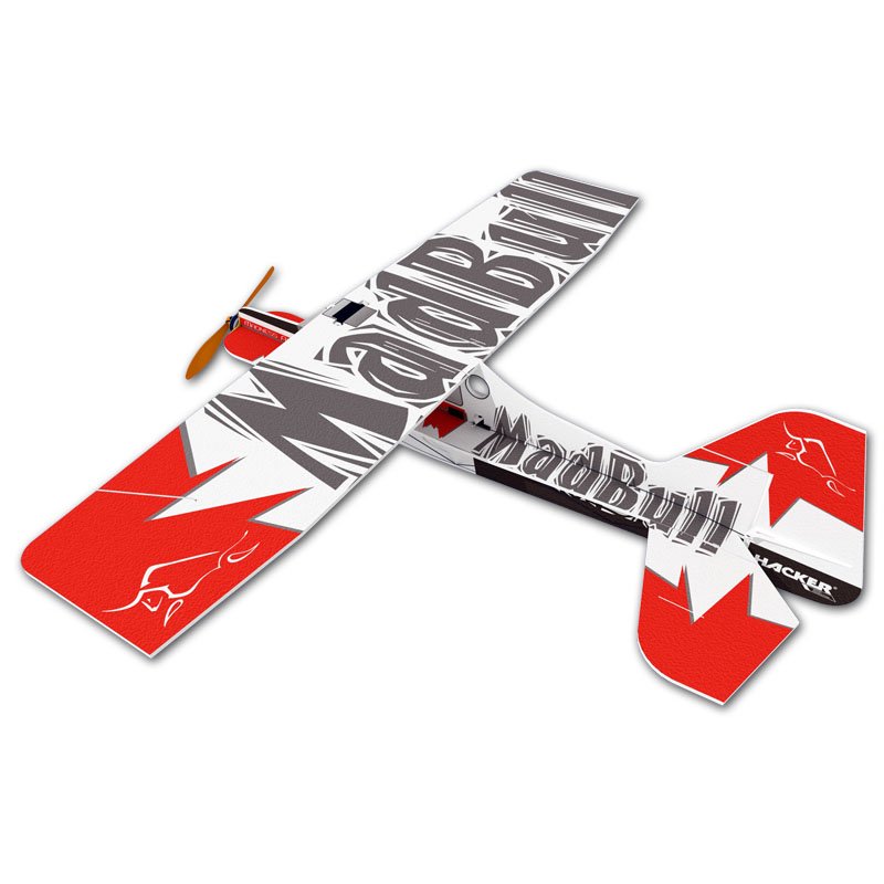 Der MadBull von HACKER sieht zwar aus wie ein Trainer – ist aber dank seiner Proportionen und den übergroßen Rudern ein vollblütiger 3D-Akrobat für Hallen und Parks. Dieser Hochdecker ist auch aufgrund seines Pendelhöhenleitwerks ein echter Hingucker mit maximaler Manövrierbarkeit und höchster Stabilität auf engstem Raum.