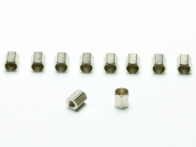 Sicherungsmuttern als Verdrehsicherung für handelsübliche Gabelköpfe, hergestellt aus vernickeltem Stahl.