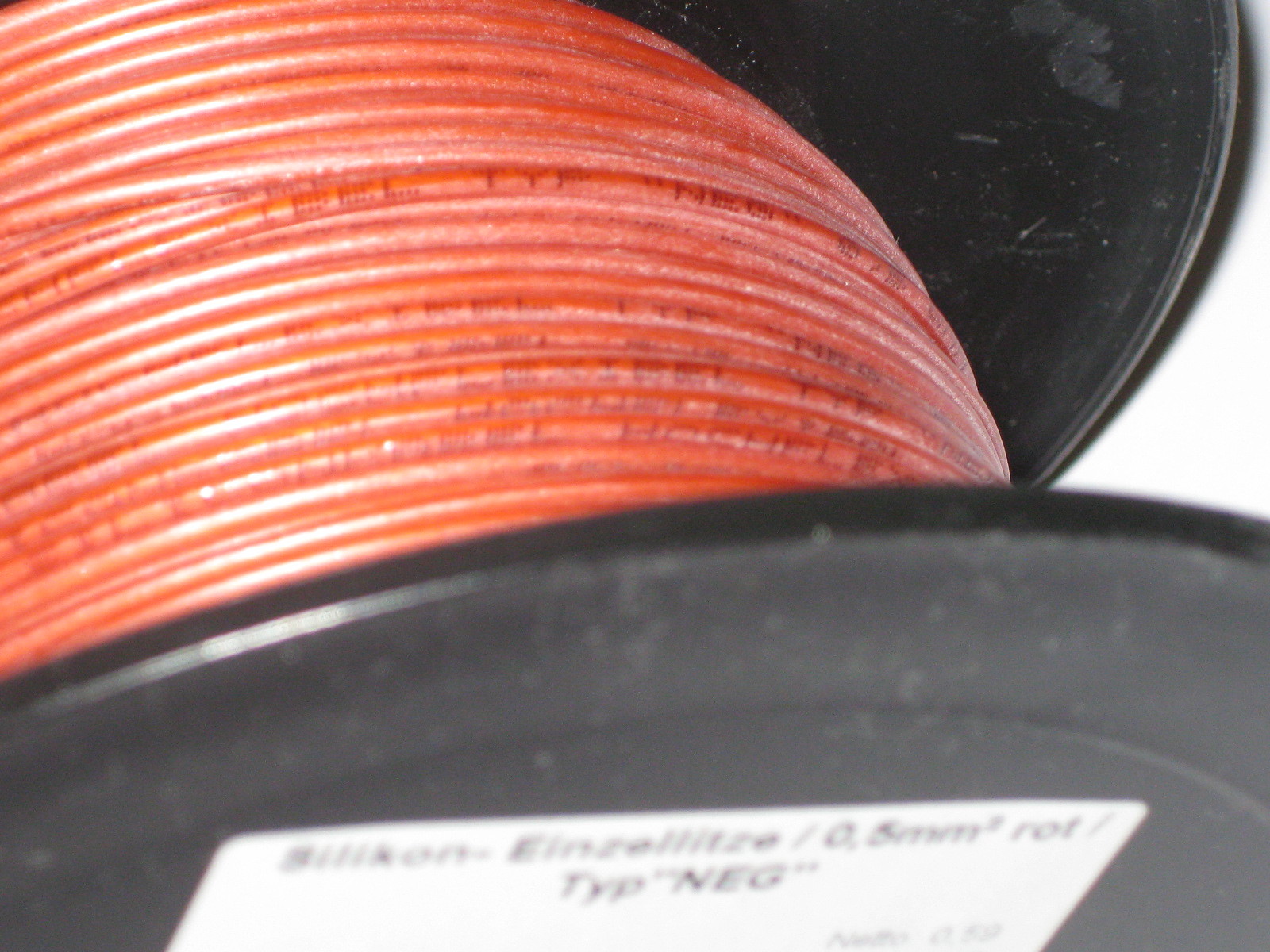 - Aufdruck: SILICONKABEL HOCHFLEXIBEL TYP "NEG" 0,5 QMM