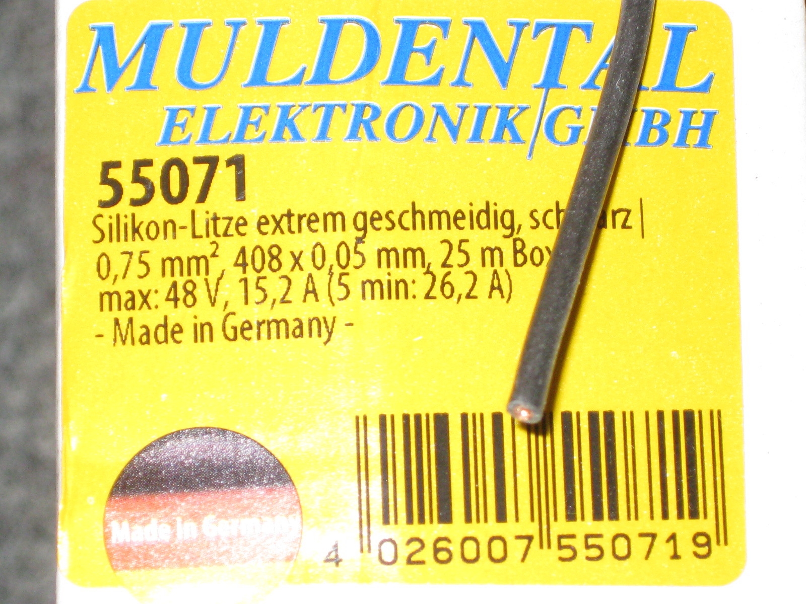 Silikon-Litze 0,75mm² schwarz, sehr geschmeidig 408x0,05mm, max.48V 15A dauer / 26A kurzzeitig