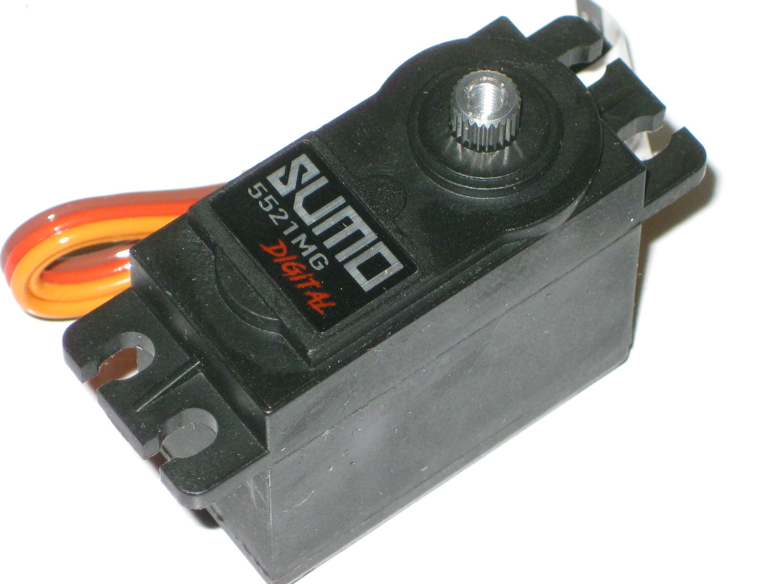 Das Servo 5521MG aus der Serie SUMO ist mit digitaler Steuerelektronik, Standardmotor, Metallgetriebe, Doppelkugellager sowie Kunststoffgehäuse ausgestattet. Bei 4,8 V Betriebsspannung bewältigt es einen Drehweg von 60 ° in 0,18 s und bei 6,0 V in 0,16 s. Je nach Betriebsspannung beträgt das Drehmoment 17,25 kg/cm bis hin zu 20,32 kg/cm. Das Servo hat Abmessungen von 40,5 x 20,2 x 40,0 mm und wiegt 62 g. Der Anschluss erfolgt über ein JR-kompatibles Stecksystem mit PVC-Servokabel von insgesamt ca. 260 mm Länge.