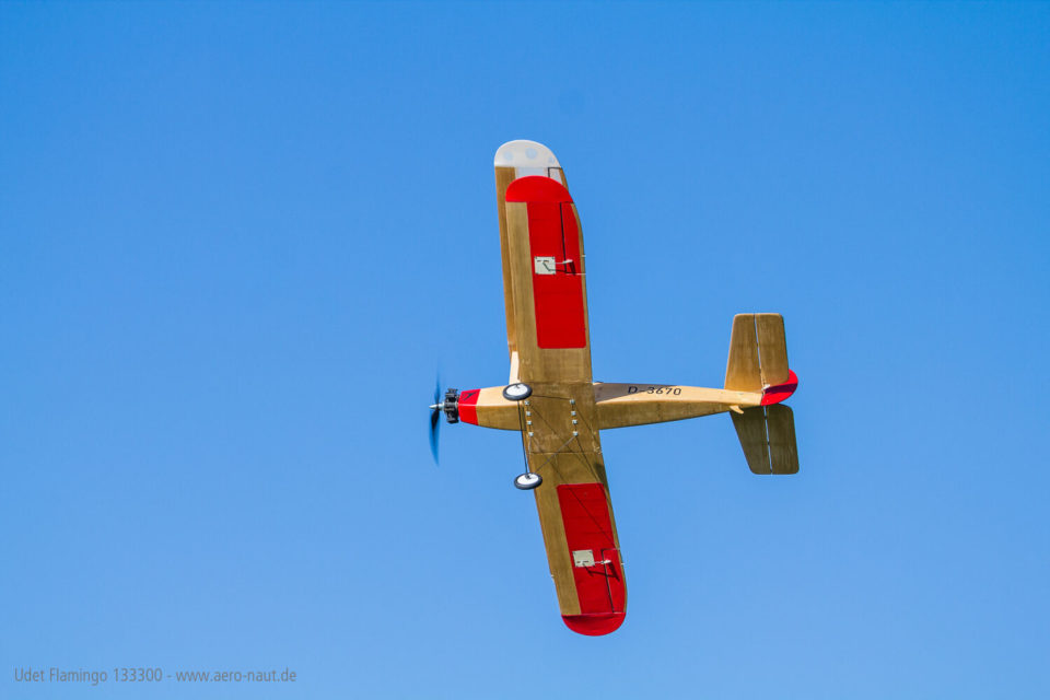 Udet Flamingo ist einer der Klassiker im Bereich der Doppeldecker. Das Modell wurde bereits in den frühen 1970er Jahren bei aero-naut eingeführt und wurde bis vor kurzem in fast unveränderter Form produziert. Das war Grund genug, um dem Modell zum 100jährigen Firmenjubiläum eine komplette Neukonstruktion zu gönnen. Diese Version wird komplett aus Laserteilen aufgebaut und eignet sich für 35-mm-Elektromotoren. Die Bautechnik sowie die Bauteile sind nun auf dem aktuellen Stand der Technik. Dem Modell wurde zusätzlich Querruder eingebaut sowie die Flächenkonstruktion optimiert.
